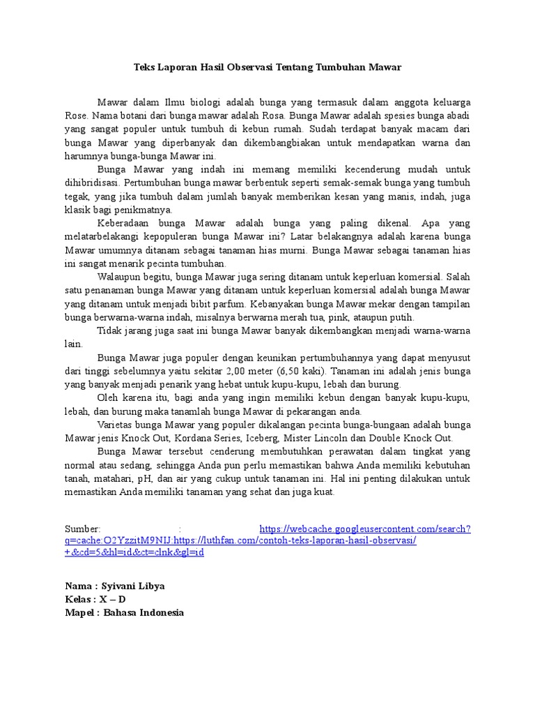 Contoh Teks Laporan Hasil Observasi Tentang Bunga Mawar - Dapatkan Contoh