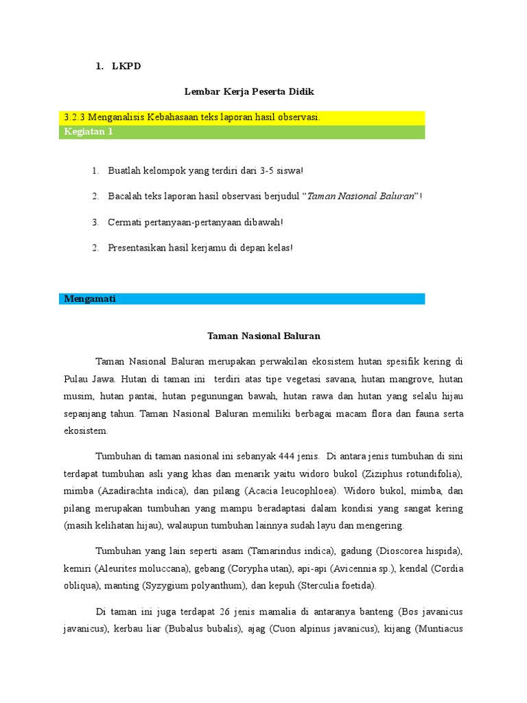 TEKS LAPORAN HASIL OBSERVASI : TAMAN NASIONAL BALURAN - RUANG GURU BY SMK TKM TEKNIK KEBUMEN