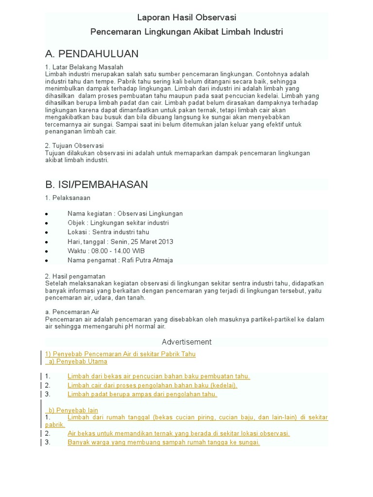 DOC) LAPORAN OBSERVASI PENCEMARAN LINGKUNGAN | tugasipa kelasdelapan - Academia.edu