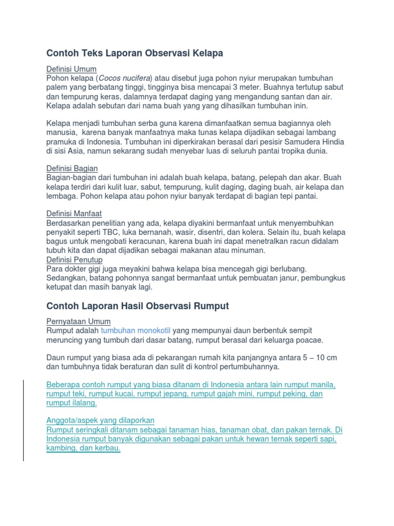 PDF) Contoh Teks Laporan Hasil Observasi Sekolah, Lingkungan, Hewan, Tumbuhan, Alam Terlengkap | Satria Baja Hitam - Academia.edu