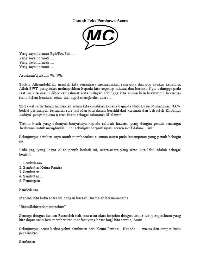DOC) Contoh Naskah MC……. | afny S. Fadhillatul Chair - Academia.edu