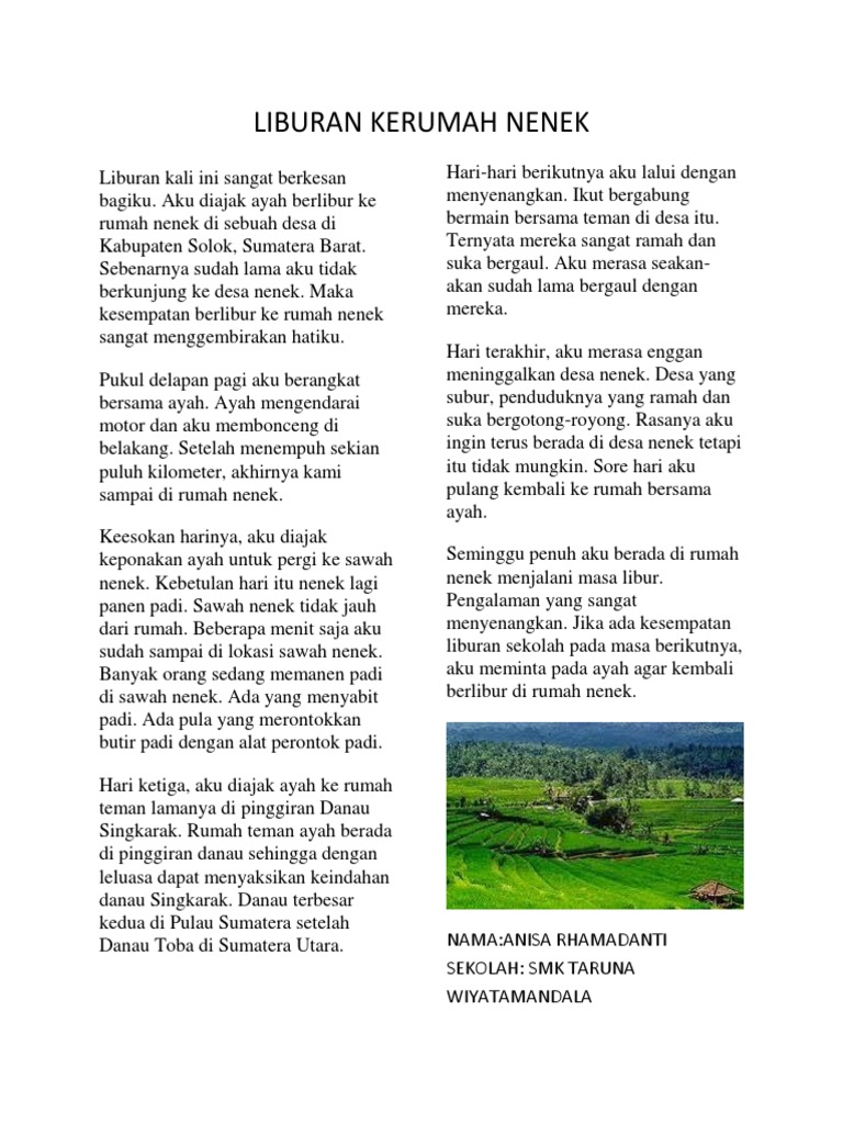 Contoh Cerpen Pengalaman Pribadi Liburan Ke Rumah Nenek | Kumpulan Soal pelajaran 10