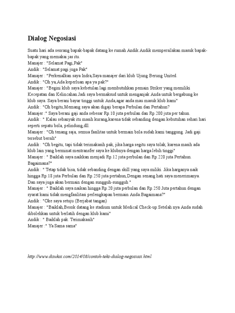 Contoh Teks Negosiasi Dalam Bentuk Dialog - Freedomnesia