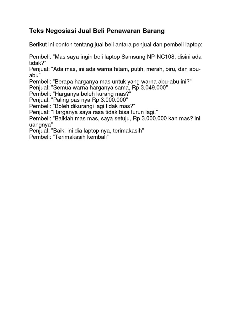 5+ CONTOH TEKS NEGOSIASI Jual Beli & Strukturnya [SINGKAT]