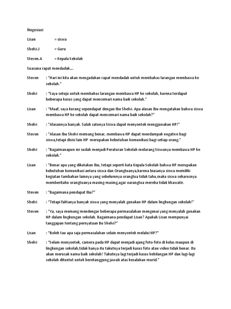 Contoh Teks Negosiasi Tentang Larangan Membawa Hp Ke Sekolah - Dapatkan Contoh
