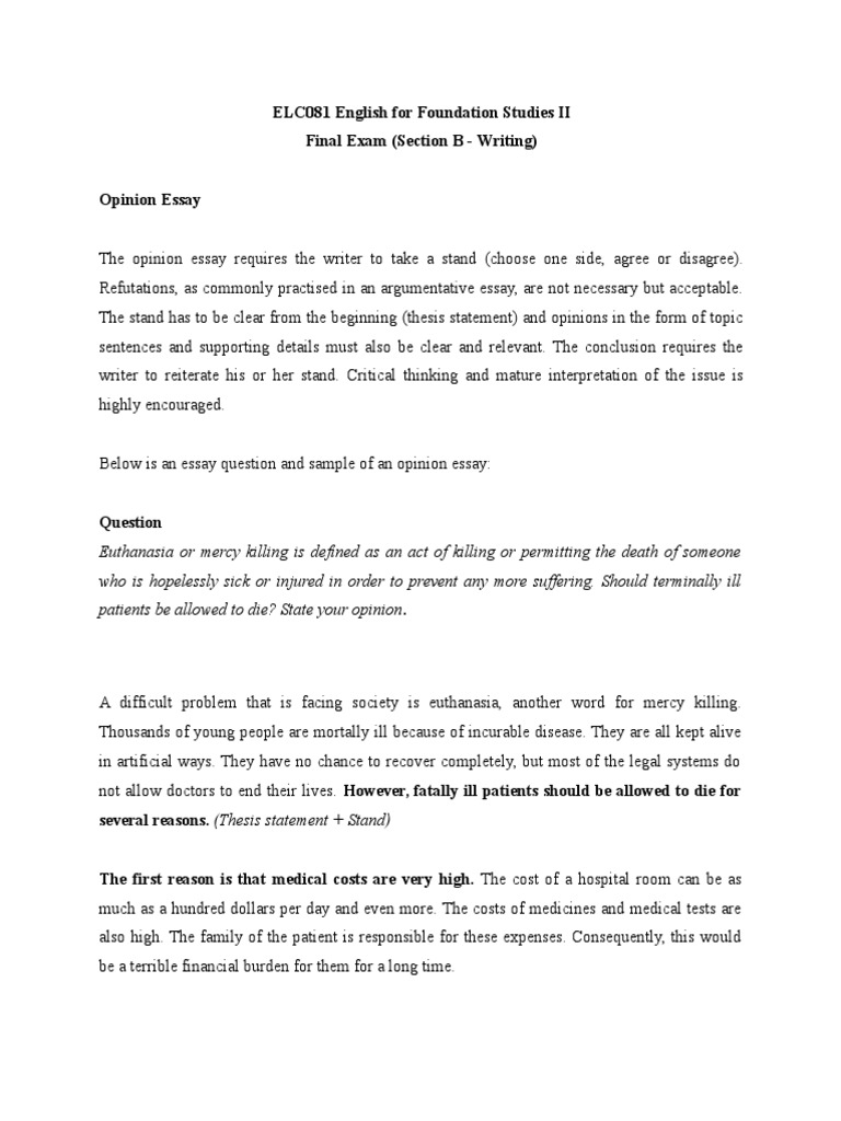ELC081 Sample of Opinion Essay-2 (1) | Coma | Health Care