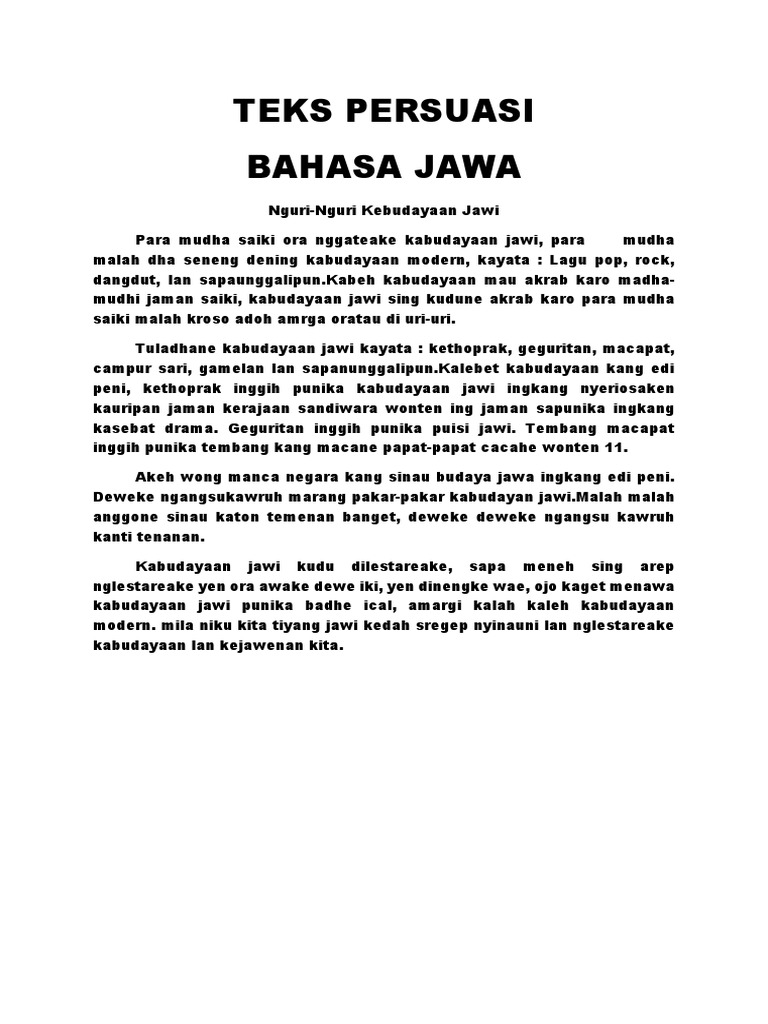 Contoh Paragraf Persuasi Dalam Bahasa Jawa - Barisan Contoh
