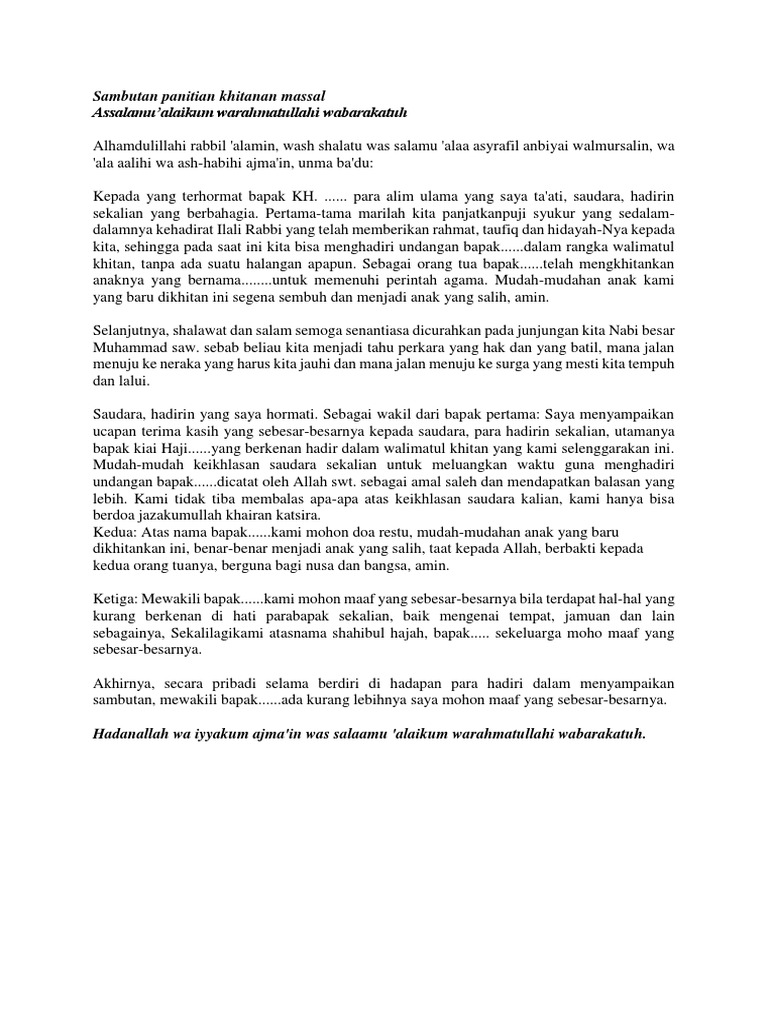 Contoh Kata Sambutan Acara Khitanan Lengkap | Zona ilmu 5