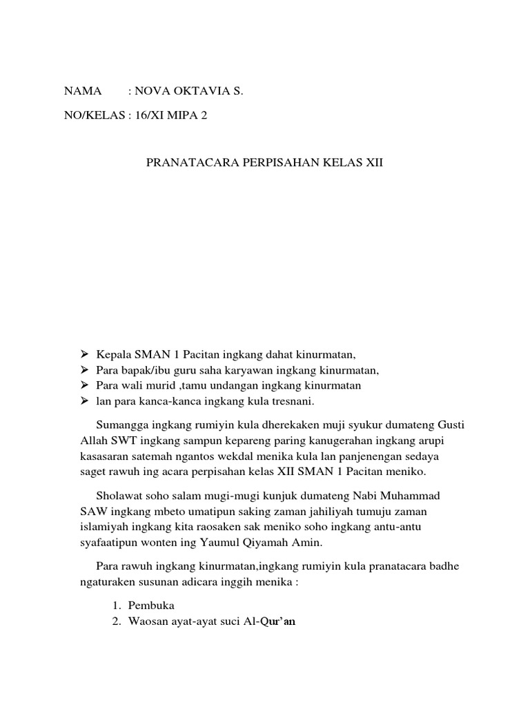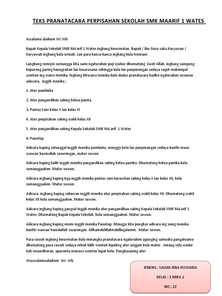 contoh soal shu: Contoh Pidato Bahasa Jawa Tentang Perpisahan