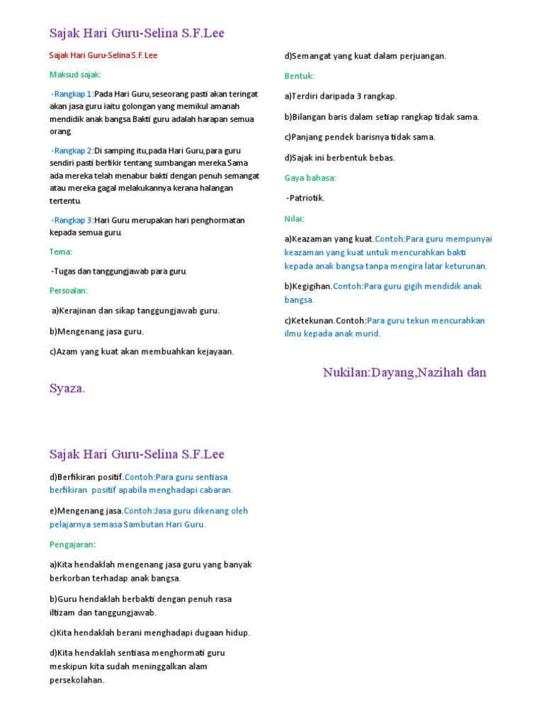 Contoh Sajak Hari Guru