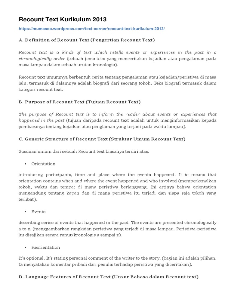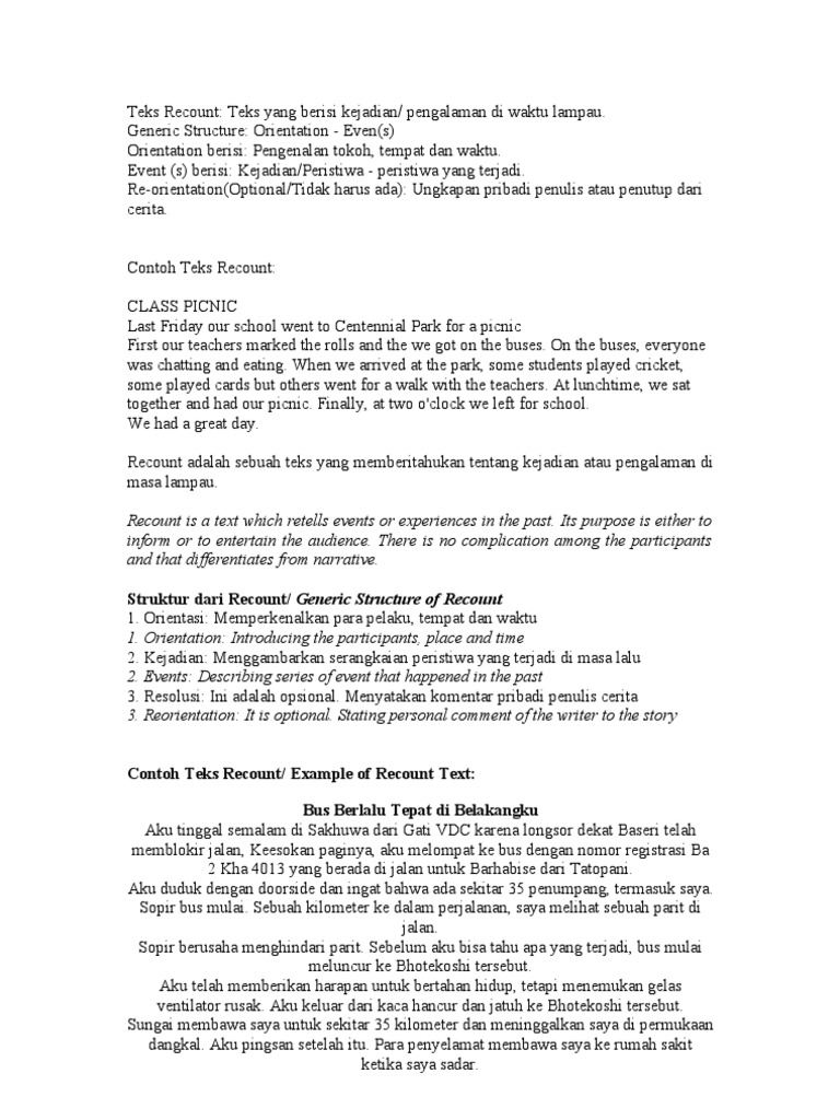 4 Contoh Recount Text Inggris | Bahasa | Sridianti.com