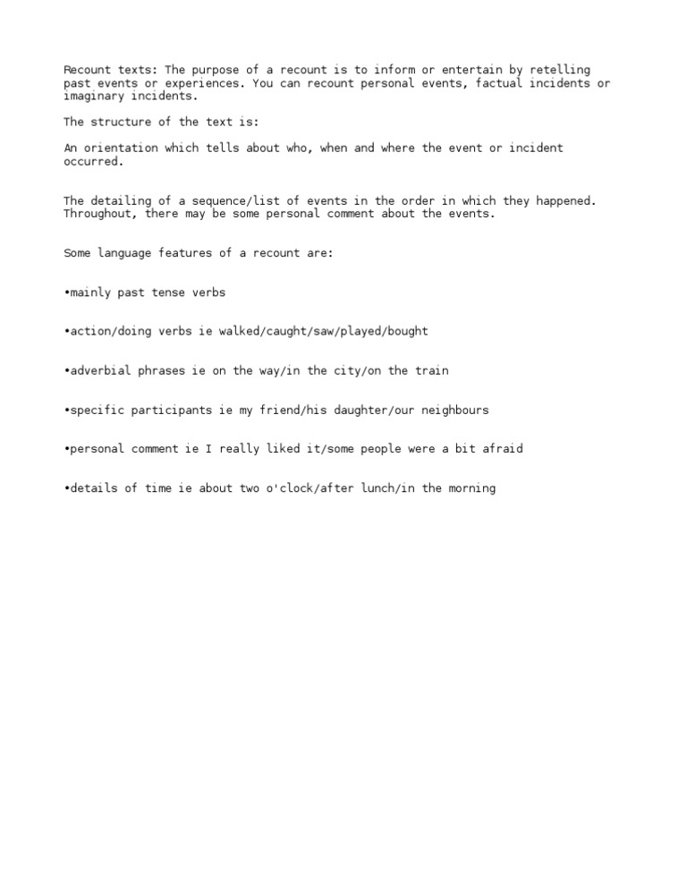 Recount Texts: The Purpose of a Recount is to Inform | Grammatical Tense | Syntax