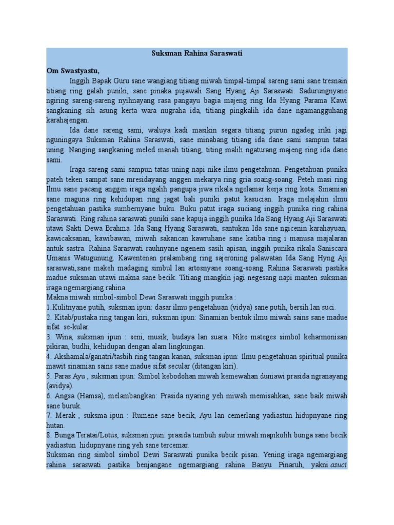 Contoh Dharma Wacana Saraswati