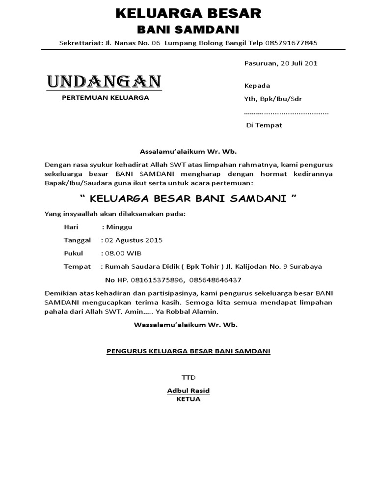 DOC) contoh surat undangan MUSYAWARAH KELUARGA | rahmat hidayatullah - Academia.edu