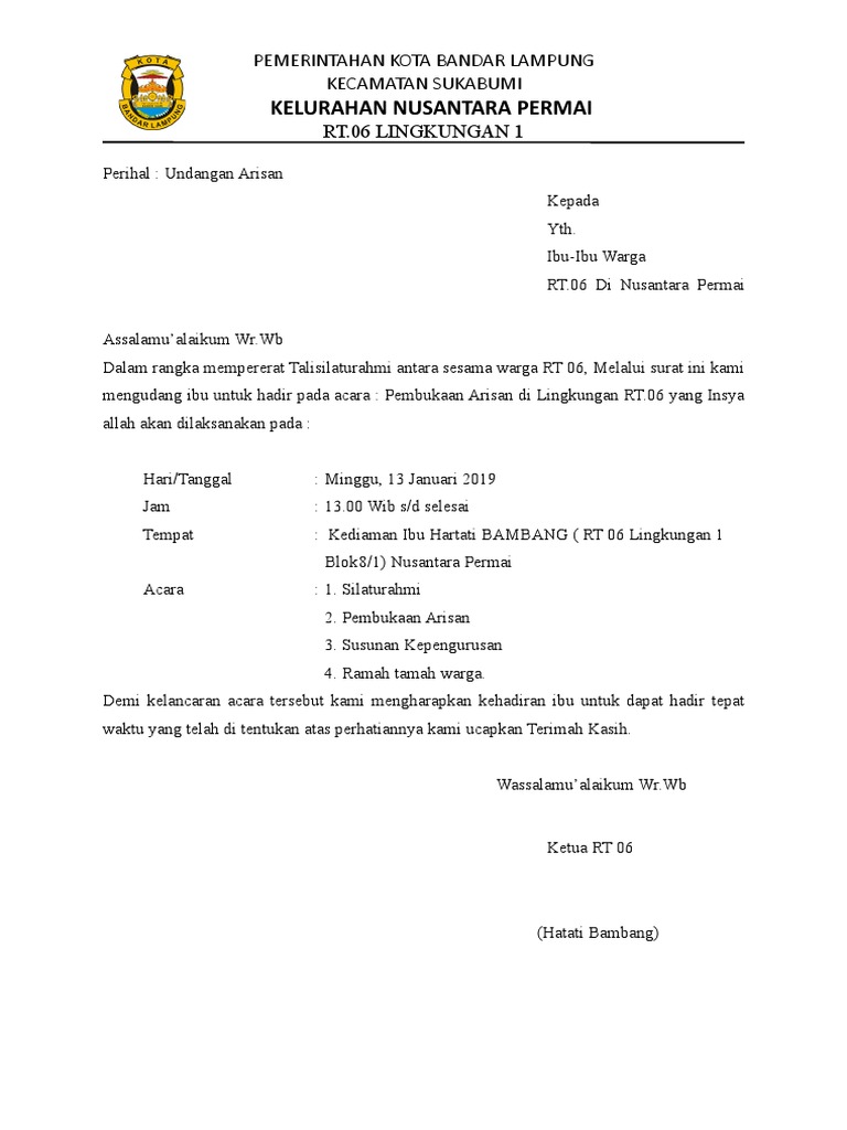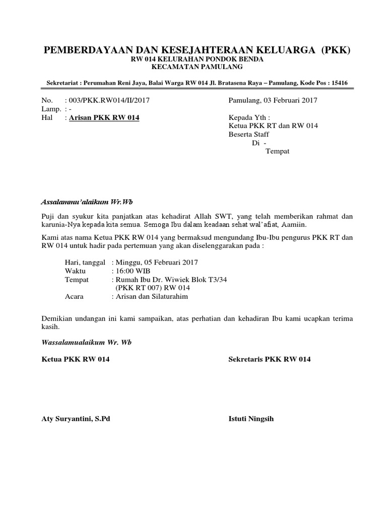 Contoh Surat Ajakan Arisan Rt | Kumpulan contoh soal 2