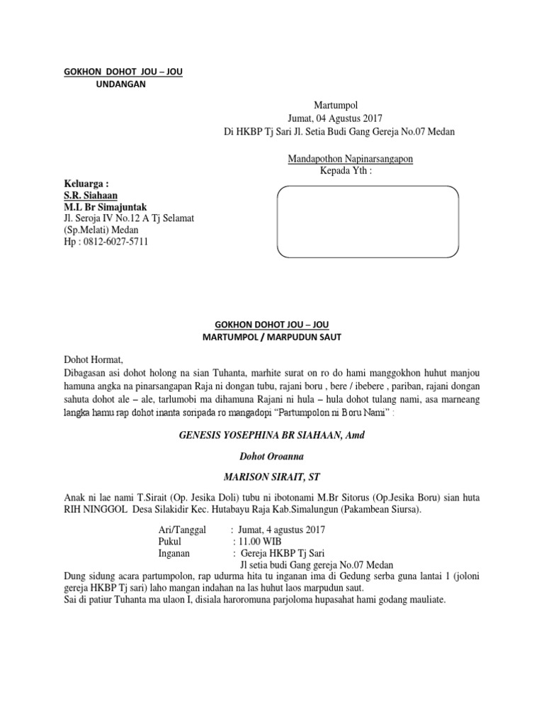 Contoh Surat Undangan Nikah Batak - Sample Surat Undangan