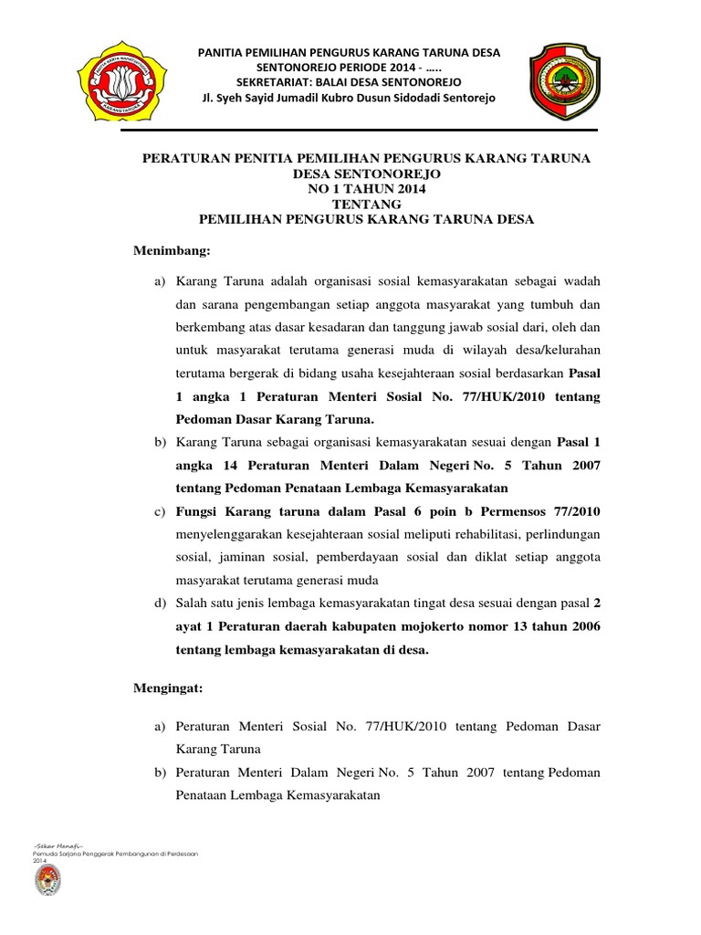 Contoh Sk Karang Taruna Desa - Guru Ilmu Sosial