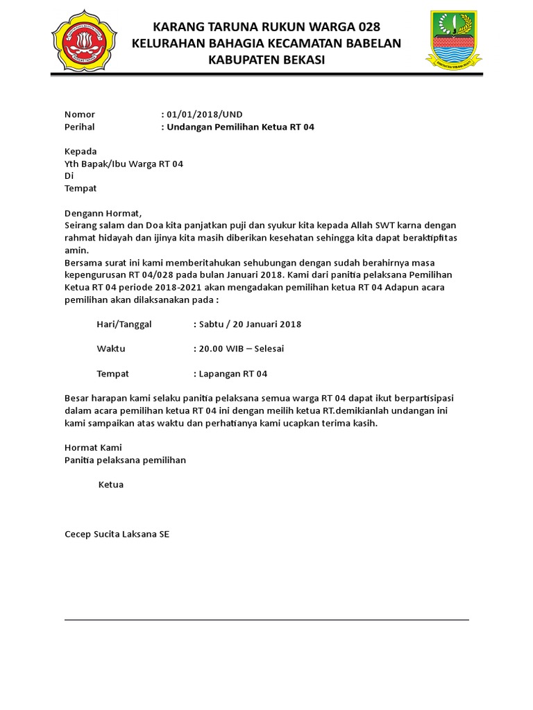 Contoh Surat Undangan Pemilihan Rt - Sample Surat Undangan