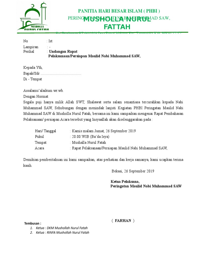 SURAT Undangan Pembentukan Panitia Maulid Nabi