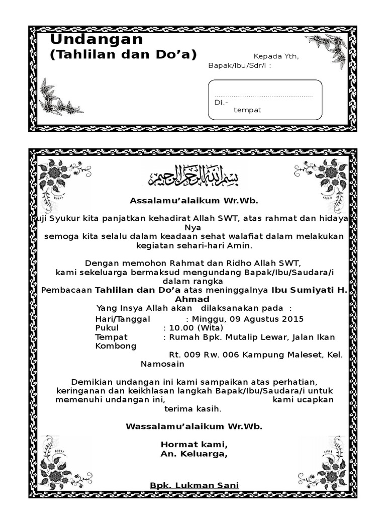 DOC) Contoh Undangan Tahlilan 40 Hari Meninggalnya | Haekal Iqbal - Academia.edu