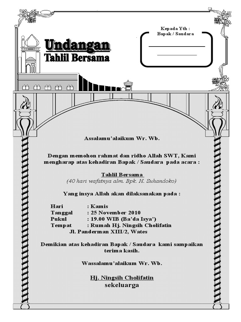 DOC) Contoh Surat Undangan Tahlil 40, 100, 1000 hari | Teja Sukmana - Academia.edu