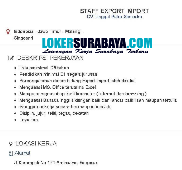 Karir Terbaru di CV. Unggul Putra Samudra Malang Singosari Desember 2019 - Lowongan Kerja Surabaya Oktober 2020 | Lowongan Kerja Jawa Timur Terbaru