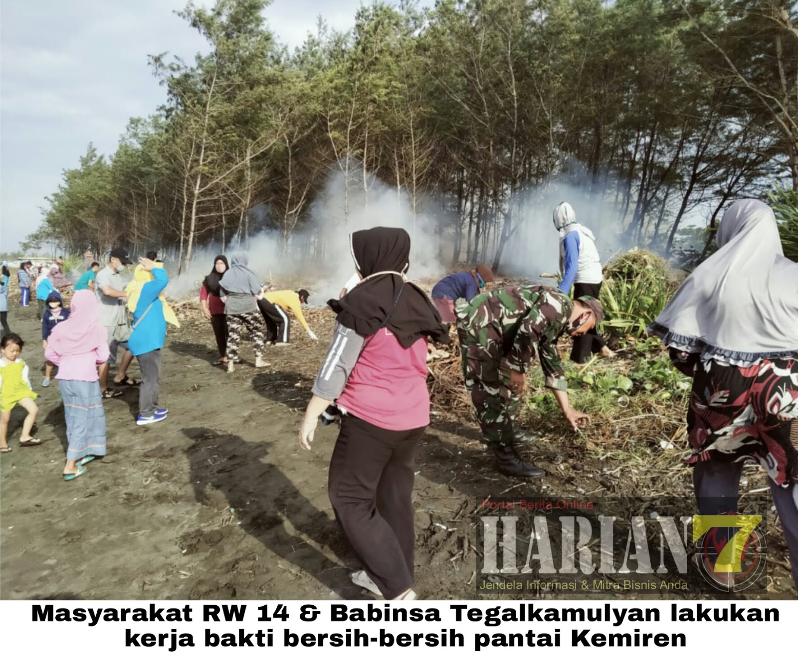 Ciptakan Lingkungan Bersih, Warga RW 14 Tegalkamulyan Bersih-Bersih Pantai Kemiren