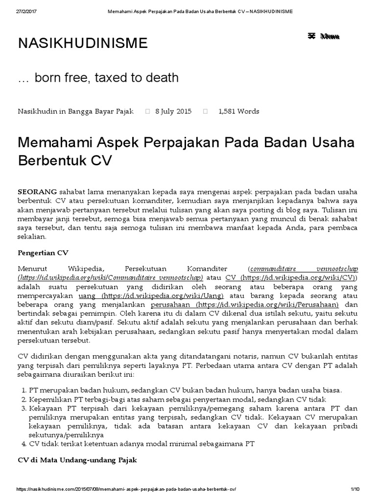 Memahami Aspek Perpajakan Pada Badan Usaha Berbentuk CV – nasikhudinis.me