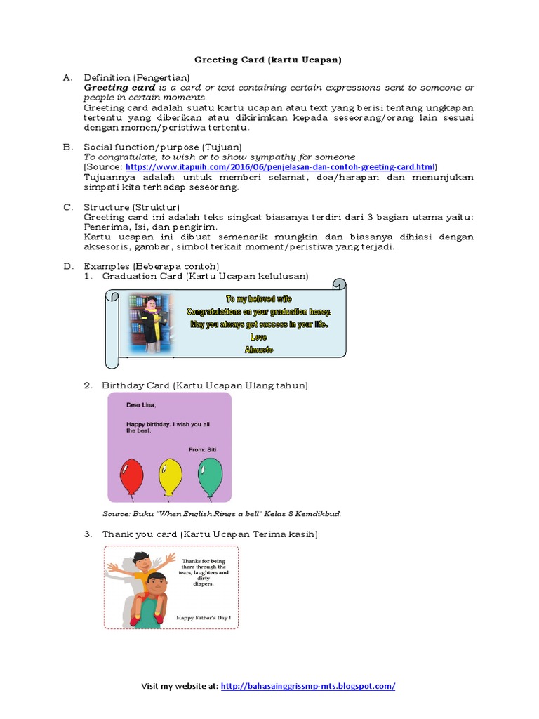 DOC) MAKALAH BAHASA INGGRIS BAB 7 – GREETING CARD Example (Contoh | LGP 23 - Academia.edu