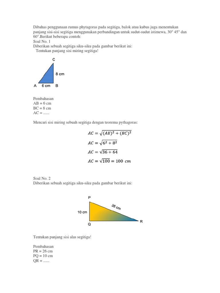 Penggunaan Rumus Phytagoras Pada Segitiga