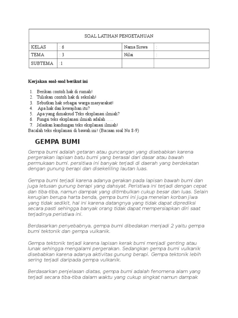 Kunci Jawaban Kelas 6 Tema 3 Teks Eksplanasi Ilmiah - BERTANYACARA